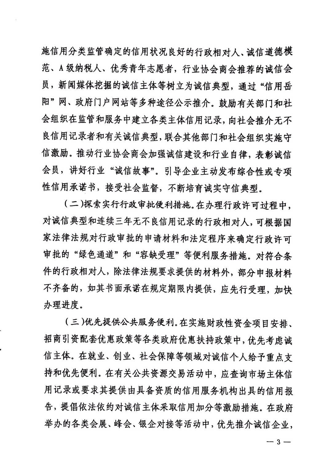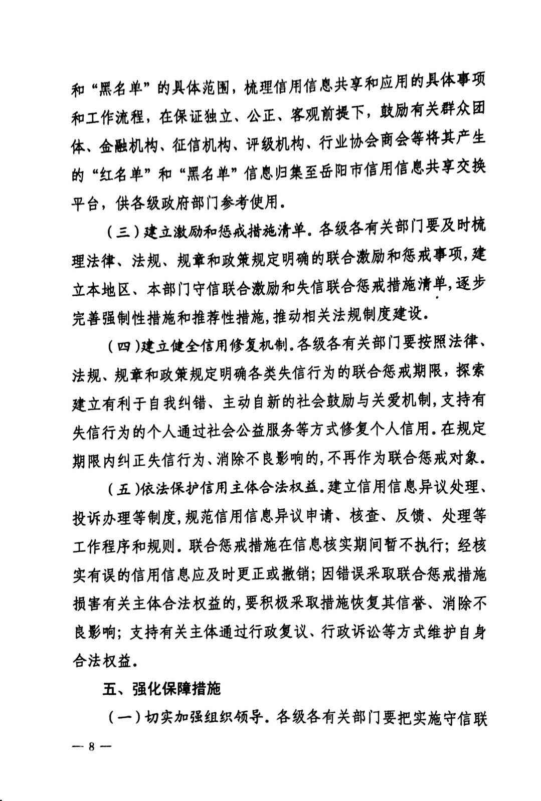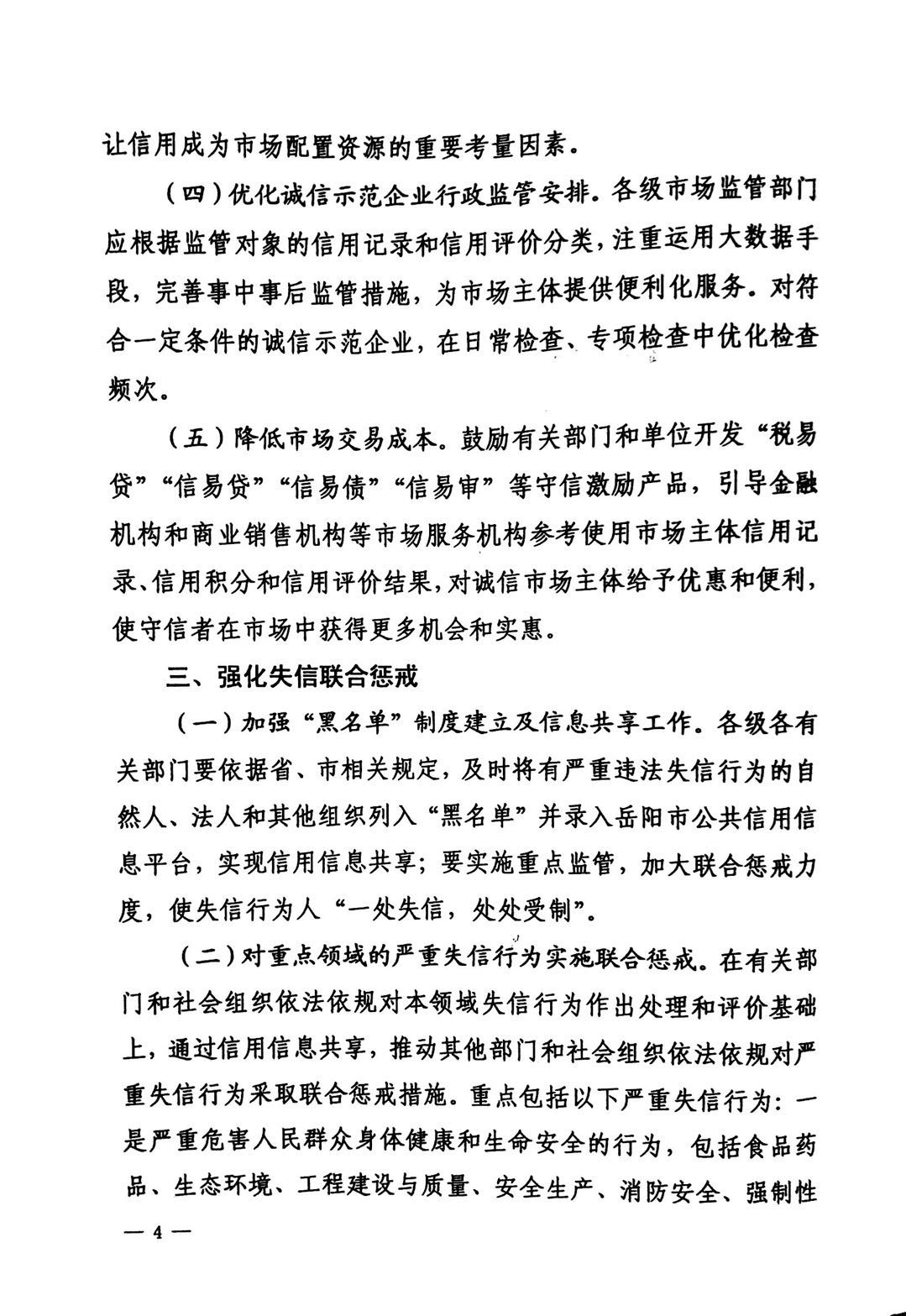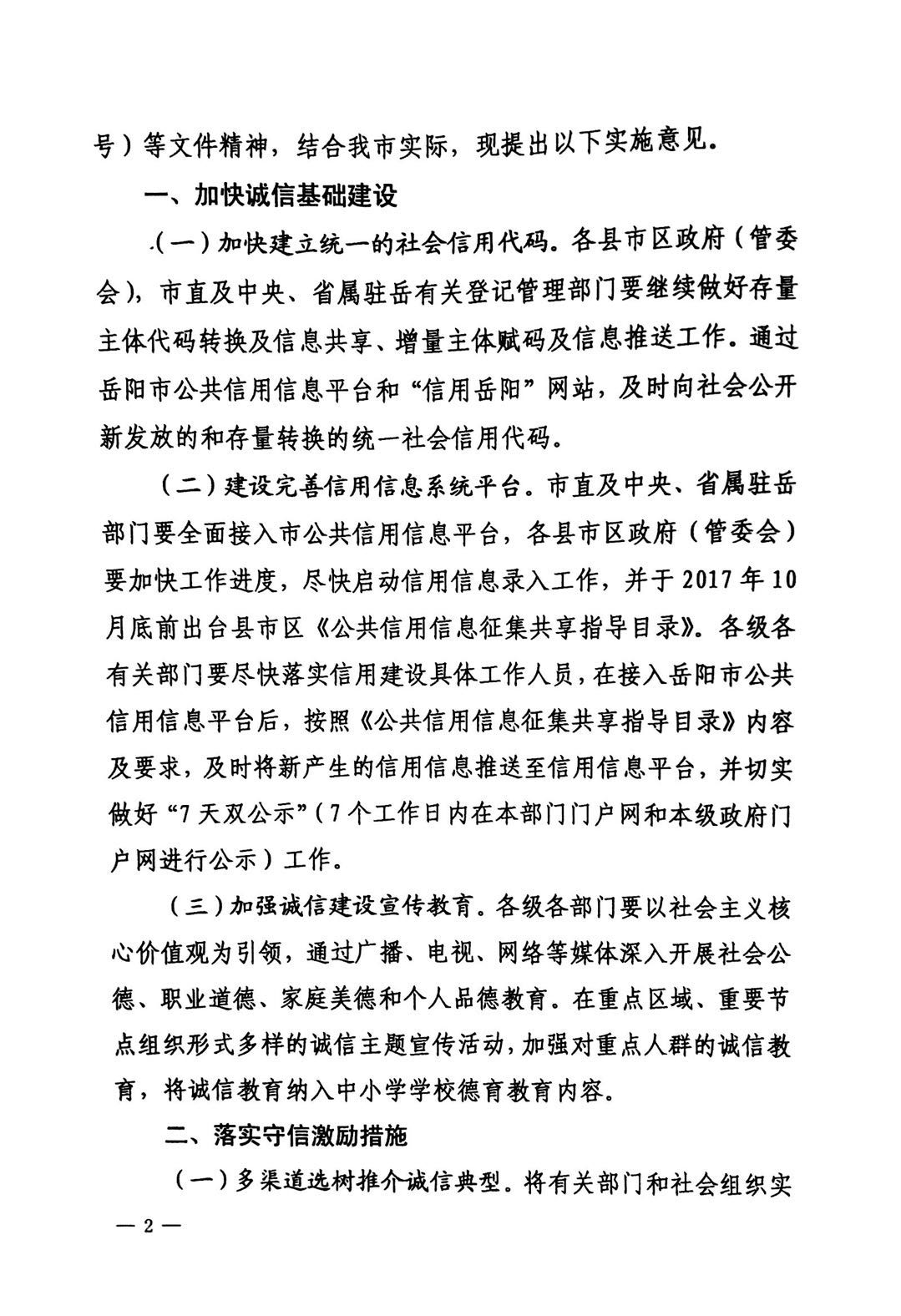 岳阳市人民政府关于建立完善守信联合激励和失信联合惩戒制度加快推进社会诚信建设的实施意见-岳政发[2017]10号